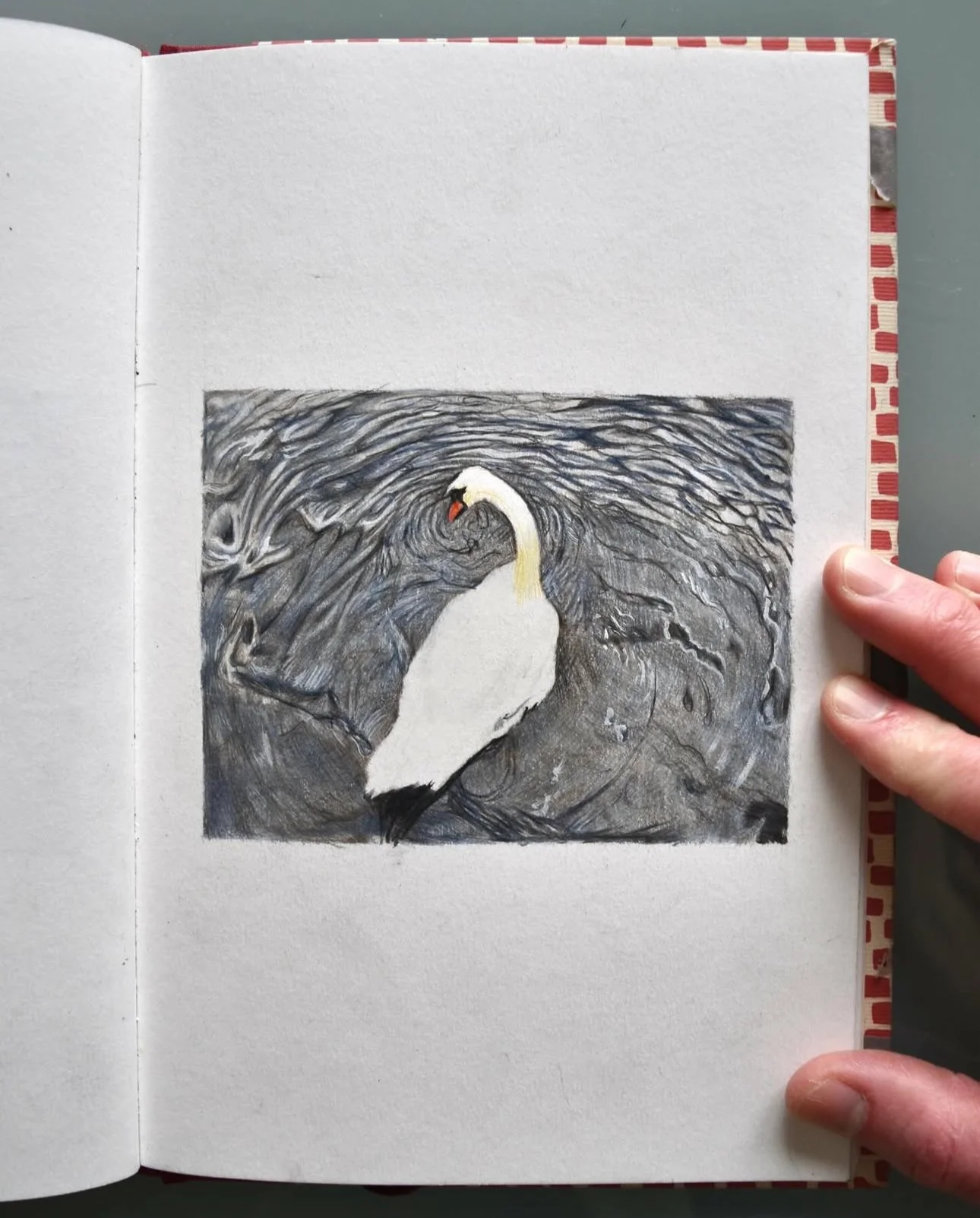 In other instances, though, the sketch feels like it satisfies the creative impulse on its own terms, and is thus a final work in its own right. That’s the case with this picture of a swan. I was inspired to draw it after spotting it in Cambridge, but have never felt the urge to take it beyond the sketchbook.