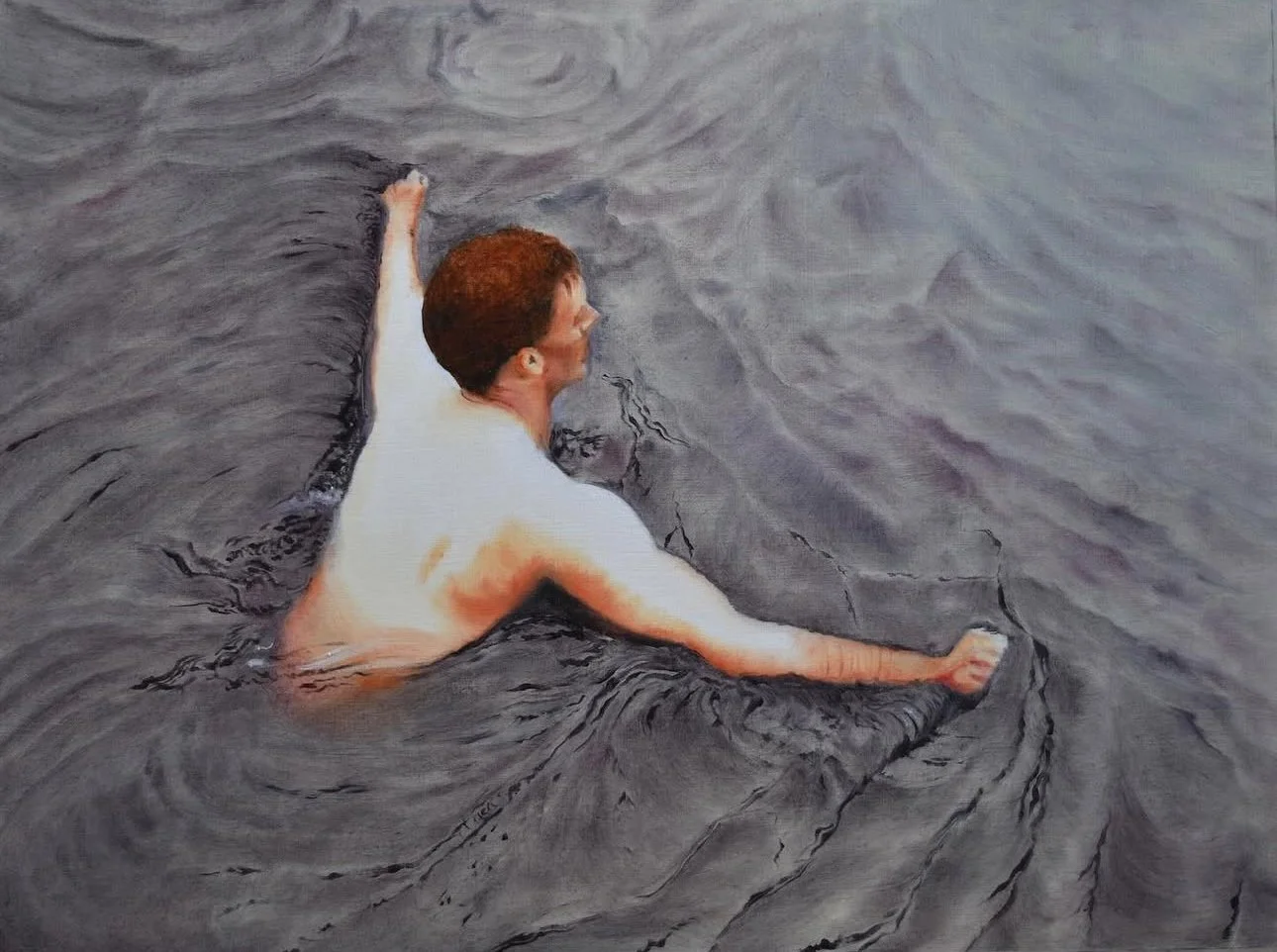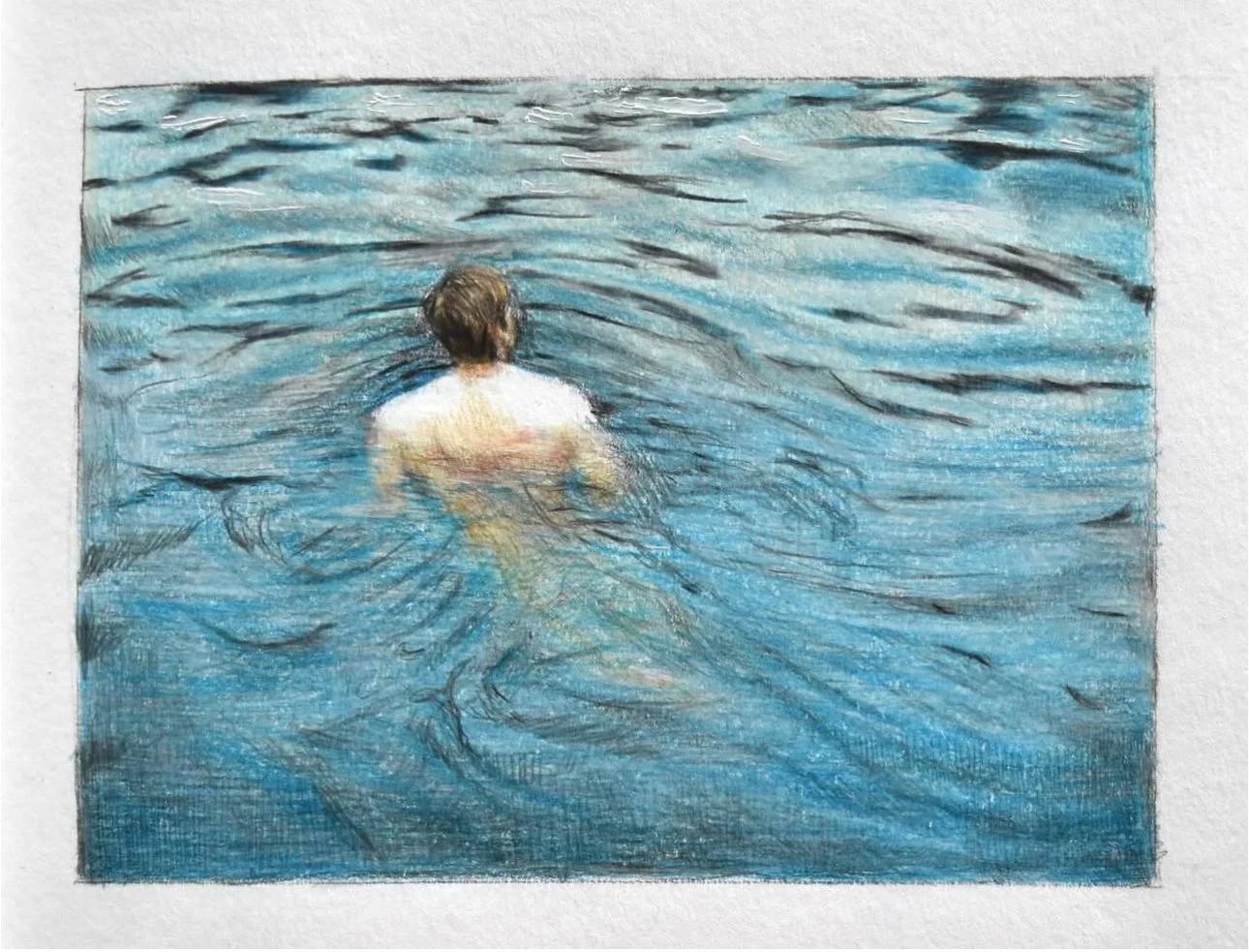 For me, sketching is often the precursor to a ‘final’ piece, its function being mainly preparatory. These works from my ‘Swimming’ series are good examples of this. In each case the sketchbook drawing was intended as the composition for a larger piece, and I was exploring form and colour with a view to translating the work into oil paint.